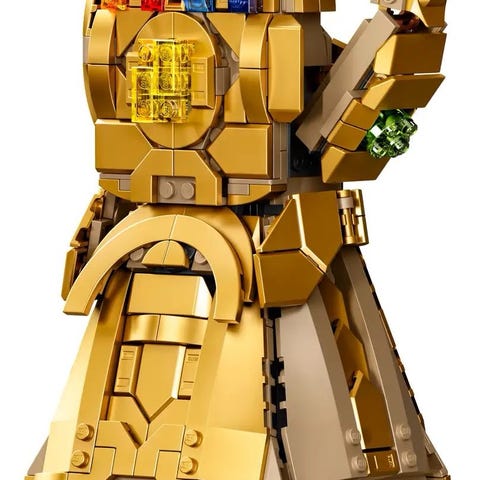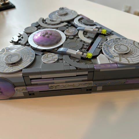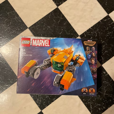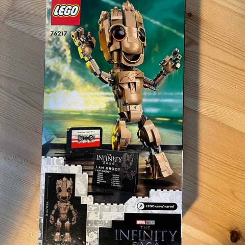 Fin Lego Groot model med kassettebånd og navneskilt. Samlet. Men Byggevejledbing medfølger. Marvel