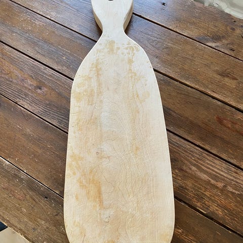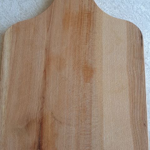 Stort skærebræt i asketræ, måler 65 x 32 cm, er 3 cm tykt.