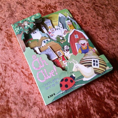 Billedbog bestående af 12 kendte børnesange med noder til melodistemmen og illustrationer, der viser handlingen i sangene.