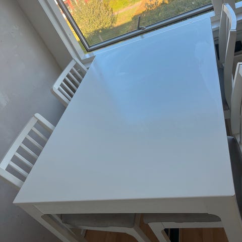 God kvalitet, men brugt højt spisebord med 4 høje stole. Lidt rust på undersiden af stolene da de har stået ude. Men fremstå ellers fine.