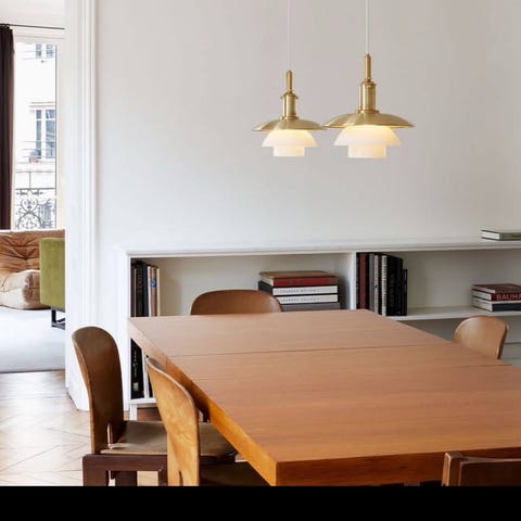 PH 3/2 pendel/loftslampe jubilæumsmodel i messing med grønne skærme