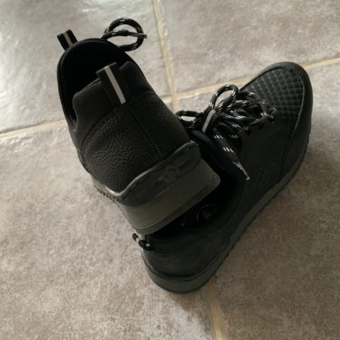Sort sko brugt ikke brugt meget, god komfort, med naturlig massage aktiv feeling i sålen. Med elastik som snørebånd så dejligt nem at tage på.