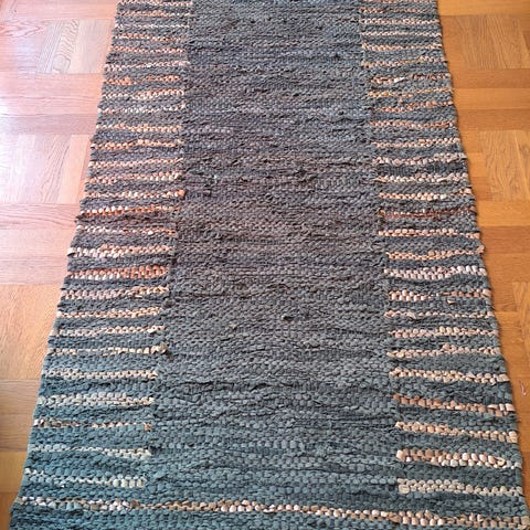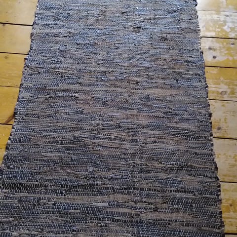 Smuk læder Måtte/ Tæppe i læder fra Broste. Kan Maskinvaskes 30G farve rosa/ Sand. Top stand.