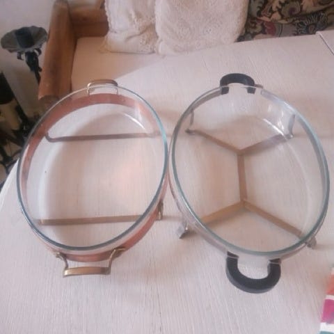 Ovnfast fad, Nilsjohan Sweden, Ovalt, ovnfast serveringsfad med holder af kobber og messing. Dette er en svensk klassiker fra Nilsjohan designet af Rolf Sinnemark.