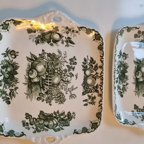 Ikoniske Mason 4 plates 43x29 cm og 6 coachers 11,5x9,5 cm i original emballage.