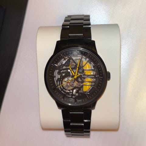 3ATM WATER RESISTANT 819G. i sat nyt batteri, dato viser,bredde 34mm. Med kronen, længden 44mm. Den er pæn ur,Passer til håndled 18.8cm. virker som det skal,uret er tungt, sender via postnord