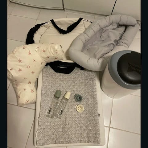 Very soft and compact pulseunderlag/ diaper changing pad with compartments for diapers and other accessories.