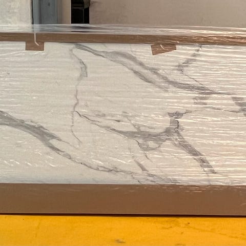 Bordpladen måler 181,5 x 100,5 og er 3 cm. Tyk.