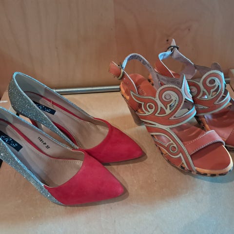 De grønne hælhøjde er 9 1/2 cm og de er fra HM