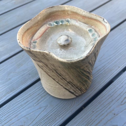 Kunstkrukke med unikt håndmalet låg.