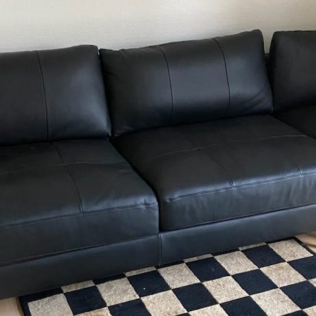 Sort lædersofa med tre sæder og armlæn. Den er som ny. Sofaen har et klassisk design med syninger på sæderne og ryglænet. Den er velegnet til stue eller opholdsrum og tilbyder komfortabel siddeplads til flere personer. Nypris i Læderland 11.450 kr. https://www.laederland.dk/sofaer/monza-sofa.html