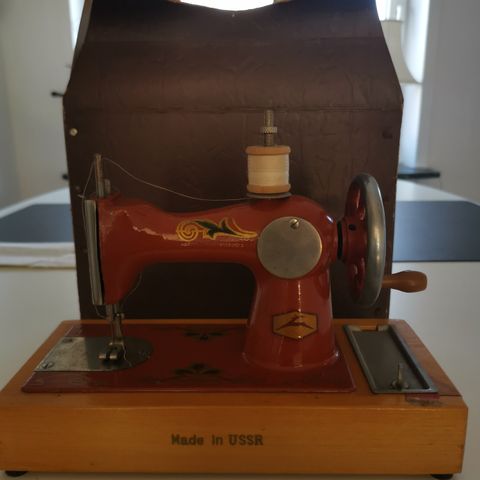 1 lille symaskine til børn, har engang været brugt til lidt dukketøj, leg o.lign, Der er det med som ses på billeder. Retro model.