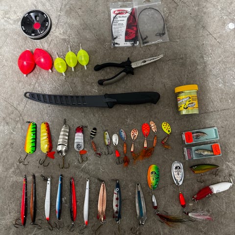 Meget forskelligt fiskegrej fiskeudstyr fiskeblink fiskestænger