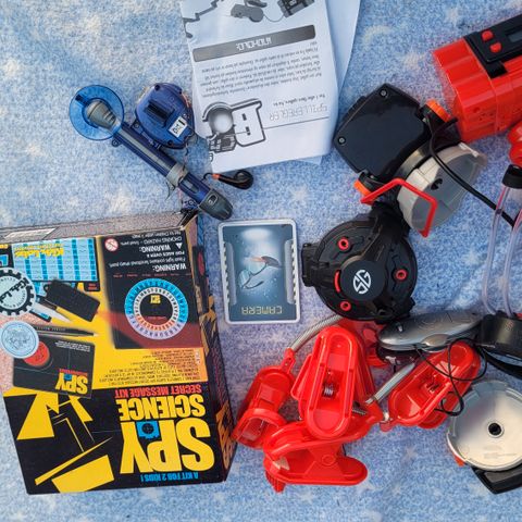Spionsæt/natursæt. Skal børnene enten være spioner, skyde fjenden, eller være på piratskibet. Eller skal de kigge efter fugle, jage dem og undersøge planterne i bunden af skoven? Så er dette sæt perfekt - med det får I et forstørrelseglas, der virker, en kikkert, der blot er et rør og en fed lidt pistol med “007” på, (kan ikke skyde tror jeg). Super fedt sæt, hvor de kan bruges til alverdens formål, når de små har lyst til at udleve nye kompetencer, fantasier eller dagens udflugt enten på farten, i skoven eller et tedje sted har brug for lidt magi.