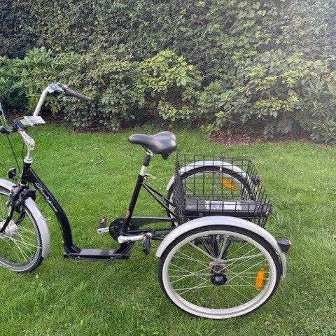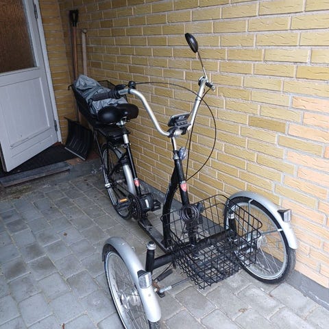 Flot Lindebjerg el-cykel med 3 hjul sælges. Kun 2 ejere. Har ikke været brugt meget. Kørt 160 km svarende til 9-10 timer.