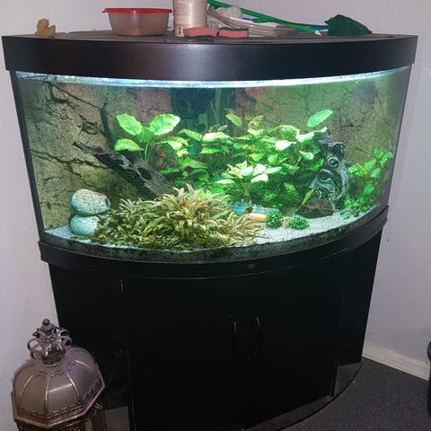Akvariet er rengjort ca. 90 % og klar til brug.