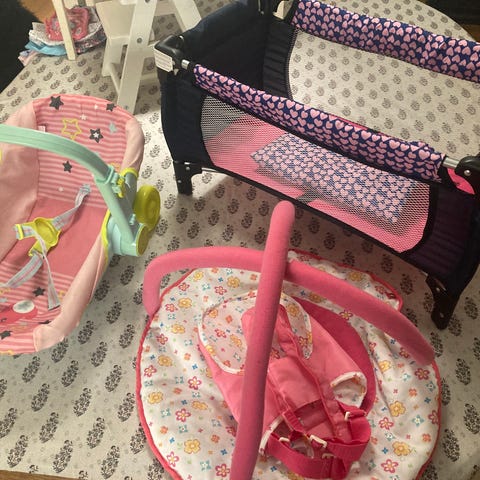Dukkenest og puslepude fra Manostiles sælges samlet.