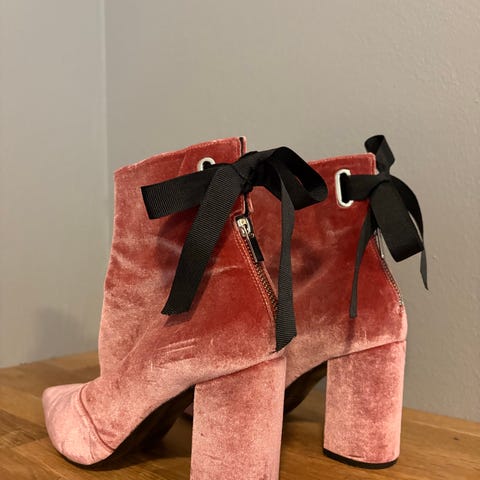 Højhælet støvle i størrelse 38. Lavet af blødt velour i en rosa farve, disse støvler er ideelle til både formelle og afslappede anledninger. Perfekt til dem, der ønsker at tilføje et stilfuldt touch til deres outfit.