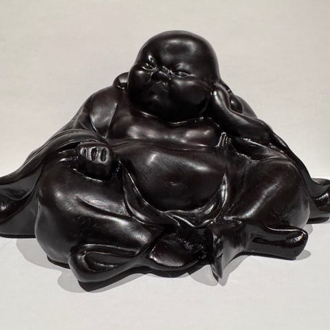 Fin og anderledes Buddha med erotisk motiv præget i bunden.