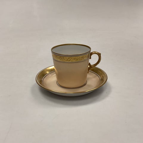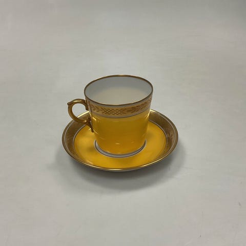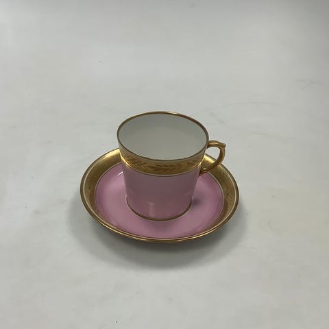 5 intakte Royal Copenhagen sæt mokkakopper med underkopper med 2 slags smukke detaljerede rokoko motiver med brede guldkanter. Sælges samlet ved afhentning.