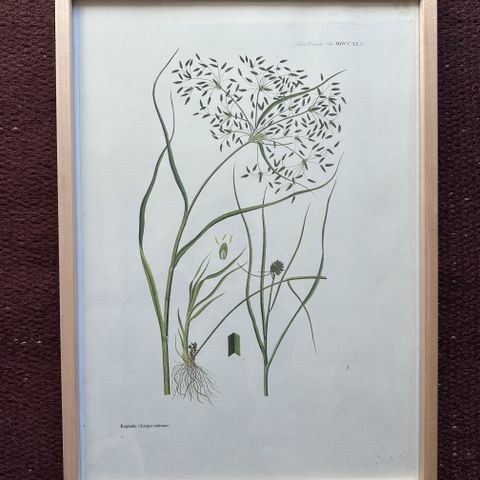 Botanisk billede i gylden ramme med botanisk illustration af slægten Natskygge (Solanum)