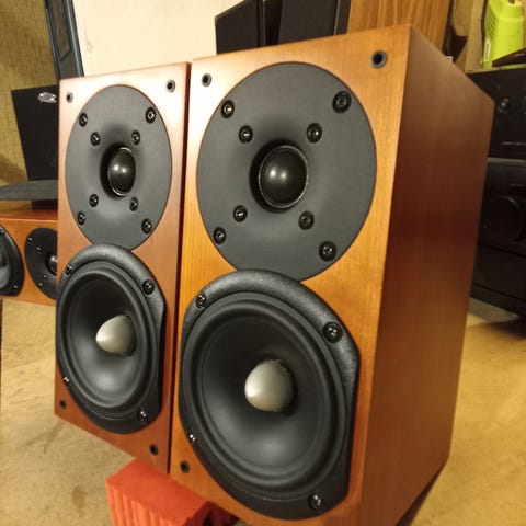 Få lækker lyd i betonhøjtalere. Basenhederne har løsnet sig ved membran. Resten er tip top og originalt. Giv et bud! Jeg anbefaler afhentning da de ikke er egnede til forsendelse.