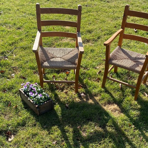 2 stk. gamle børne stole i rød. Ses slidt. Sælges samlet til 400,- for begge.