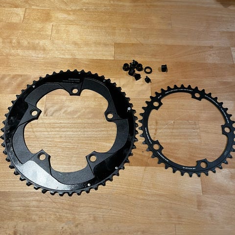 Jeg har to klinger - stort set ubrugte. Mrk SRAM Eagle X-sync2 i sorte. BCD 104 - huller. Den ene er m 34T og den anden er med 32T. Prisen er kr 215.-per stk.