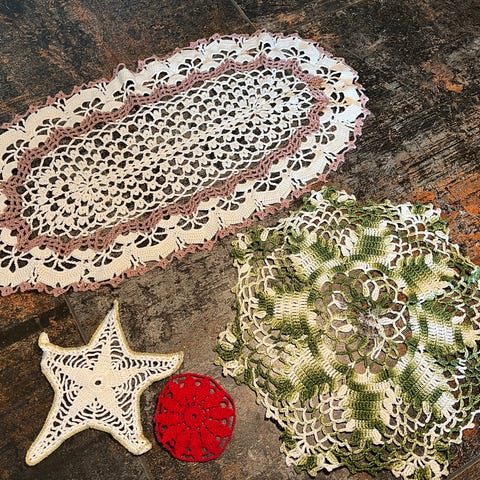 ...for at se alle mine andre annoncer med ældre håndarbejde, så som: vintage hjemmelavede og håndlavede hæklerier, kniplinger, strik, ophæng, mellemlægsservietter, klokkestrenge, duge, broderier, løbere, dækkeservietter, bordskånere, tryk, halstørklæder, lommetørklæder, duge, stramaj, doilies doily coasters coaster drikkebrik flakon flacon mandala broderi kunst mormor stil oldemor osv…