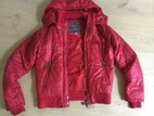 Jakke, str. 40, TRS, Rød, 100% polyester. Virkelig dejlig varm Jakke / Overgangsjakke / Vinterjakke med aftagelig hætte. Har 3 udvendige lommer + 1 indvendig. Rib ved håndled og talje. Kraftig lynlås som kan lynes begge veje.