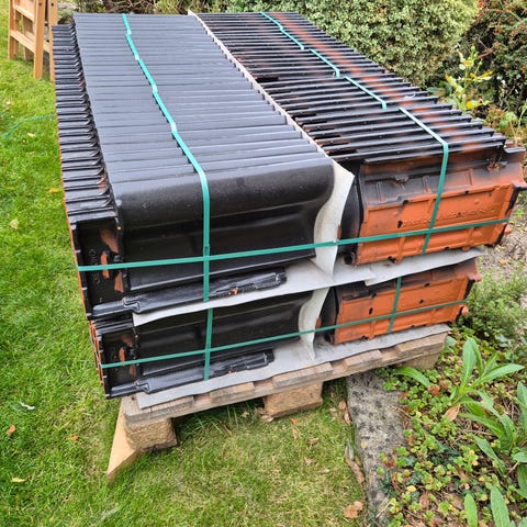 Tagsten - Rygningssten start og slut, V. Meyer, Fire V. Meyer Creaton PMoN startrygsten og slutrygsten - to af hver.