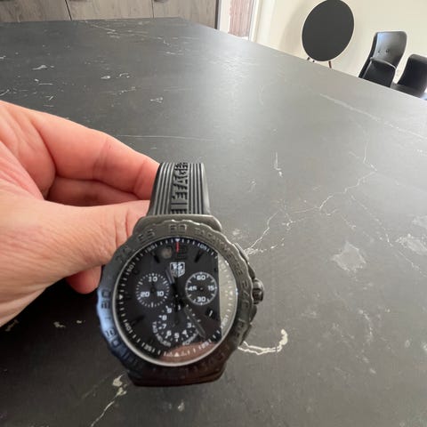 Flot Tag Heuer Kirium formula 1 årg.2007. 40 mm u. krone. Passer til håndled omkring 19 cm. Meget få brugsspor, og alle funktioner fungerer. Nyt batteri.