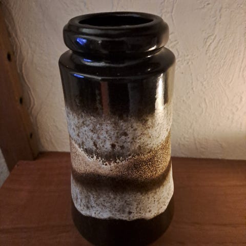 Vase opsats., Vintage, Stor smuk vintage vase opsat i keramik, dekoreret med røde roser og blade.