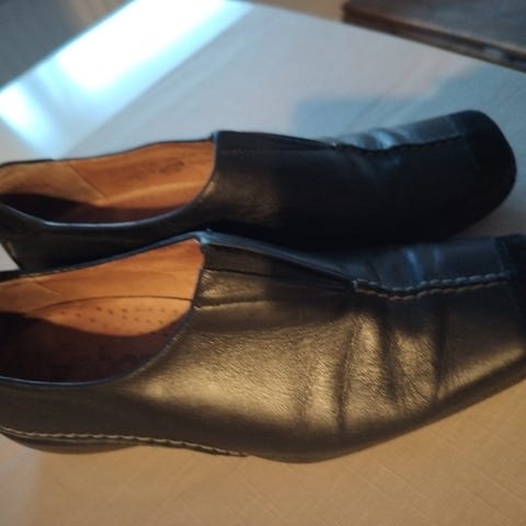Klassisk sort Gabor lædersko str 5 1/2 svarende til str 38 1/2. Skoene har elastiske sidepaneler, som gør at de er lette at tage af og på og sørger for at de sidder godt og fleksibelt omkring foden. Ny pris 799,-. Skoene er brugte men i pæn stand. Jeg sender gerne billigst muligt- køber betaler portoen.