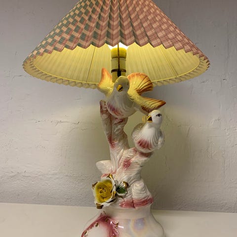 Fajance bordlampe med blomstermotiv