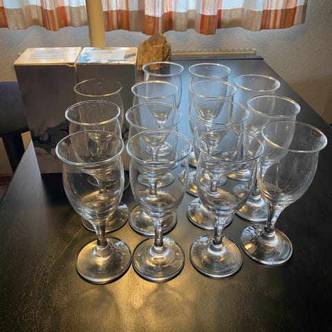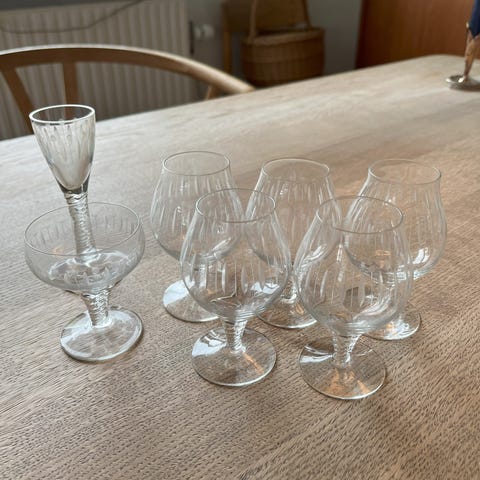 9 snapseglas h. 12 cm.