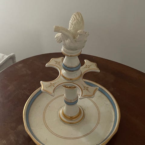 Gammel æggeskål - hønen er et låg og så kan de hårdkogte/blødkogte æg ligge i skålen.