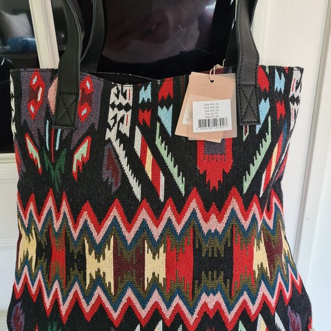 Så fin og quirky shopper / skuldertaske med virkelig fine detaljer - cute og iøjenfaldende knapper og flot brokadestof der sørger for blikfang 🫶