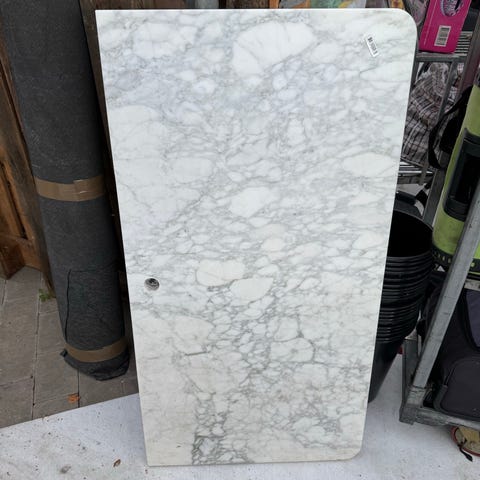Marmor bordplade på sort metal understellet. NB. Levering kan aftales.