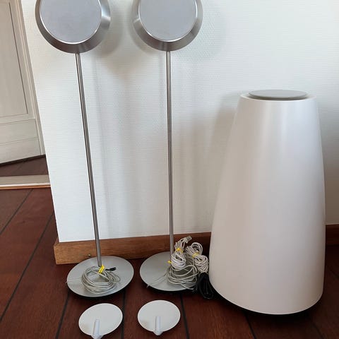 Beolab 14 med subwoofer og 4 satalitter. Medfølger 2. Stk gulvstande og 4. Stk. vægbeslag.