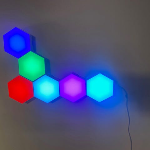 Væglampe som virker helt som ny, kan ændre farve i alle slags farver, som fungere på en app. Du kan selv bestemme mønstret ved at flytte rundt på trekanterne.