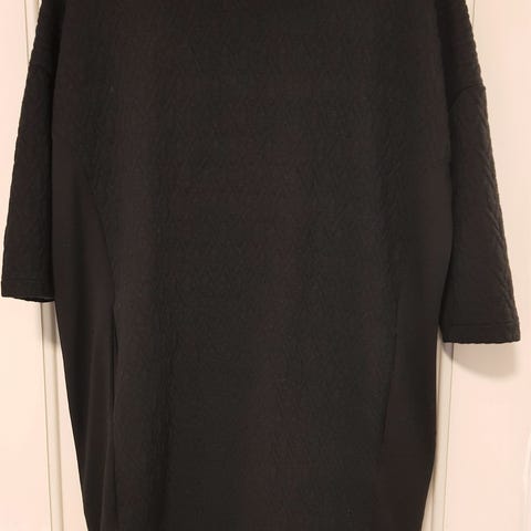Flot ubrugt sort minimalistisk kjole. Yderste lag er 94% polyester/6%elestan og inderfoer er i 100% polyester. Skrålommer foran.