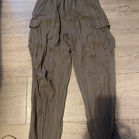 Petroleumsgrønne capri bukser fra intown, som går til midt på skinnebenet (hvis du er 167 cm som mig). De trænger vist til en stryning, men er ellers pæne. De er brugt meget lidt.