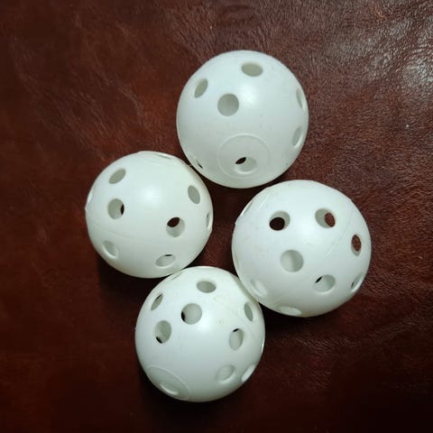 Golf boldene er hjemmelavet. Du træner armene ved at svinge dem som et sjippetov.