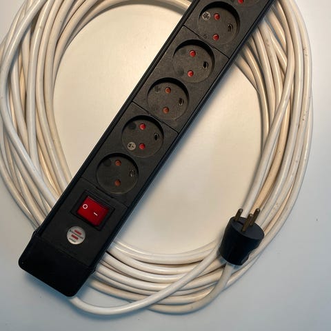 Brennenstuhl strømskinne med 4 Schuko stik og 4 USB-A stik.