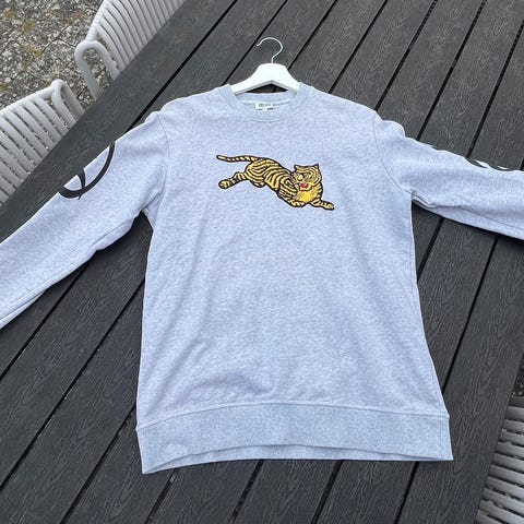 Sælger denne superflotte Kenzo sweatshirt med broderet logo. Købt i Cannes for nogle år siden, brugt meget sparsomt og fremstår i yderst velholdt stand uden pletter eller huller.