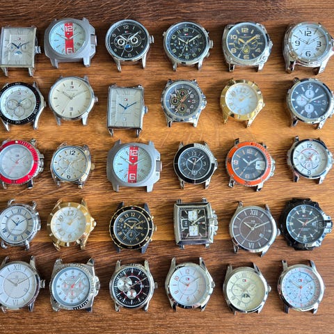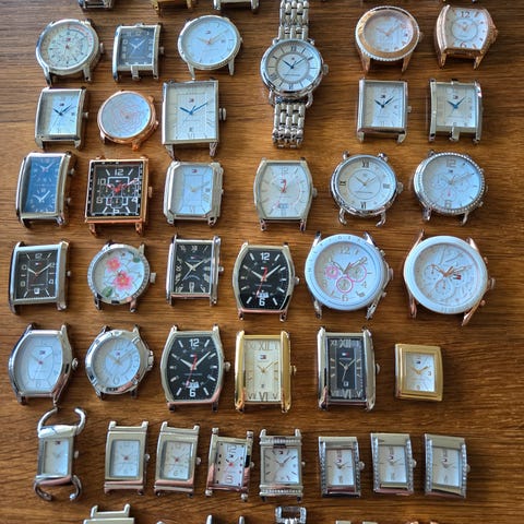 Sælger disse 10 stk Tommy hilfiger dameure. Urene har været brugt som udstillingsure det vil sige at der ikke er nogen værker i urene. Så hvis du selv kan finde de værker der høre til, har du nogle flotte ure. Lænkerne kan selvfølgelig også bruges, hvis man har et magen til ur. Prisen er for dem alle.
