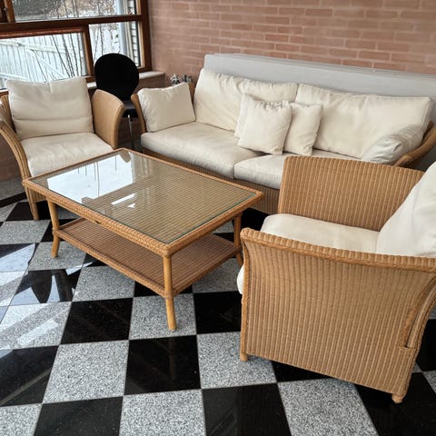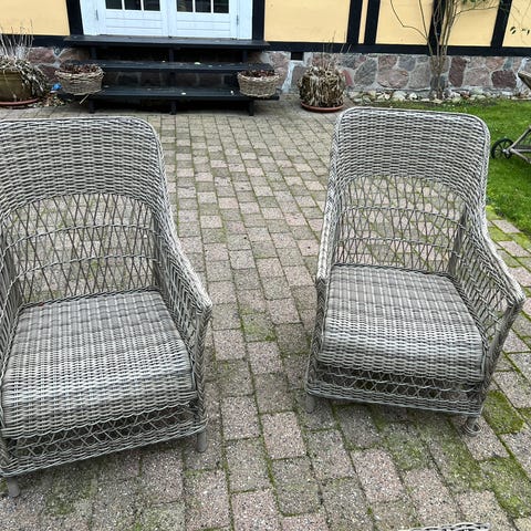 Super smukke Madeleine caféstole fra Sika design. Man sidder super godt i dem. Den ene stol er ikke så stram i fletten mere. Måske man kan fixe det? Har ikke selv forsøgt.