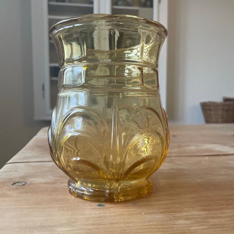 Flot fejlfri gammel vase i brunligt røget presset glas, med smukt "vifte mønster".