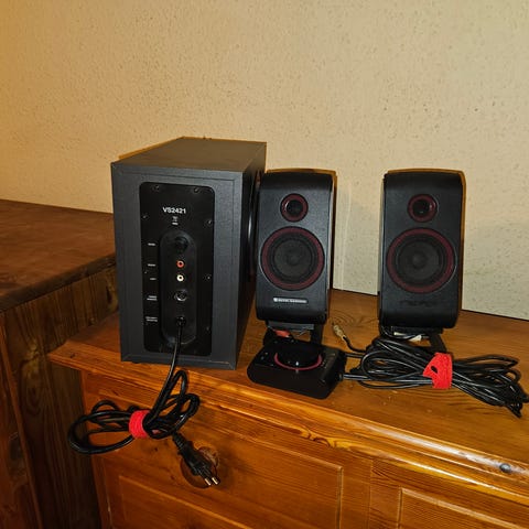 Sandberg Aux pc højttalere med surround sound. 4 sattelitter og en subwoofer. Indgang via AUX stik